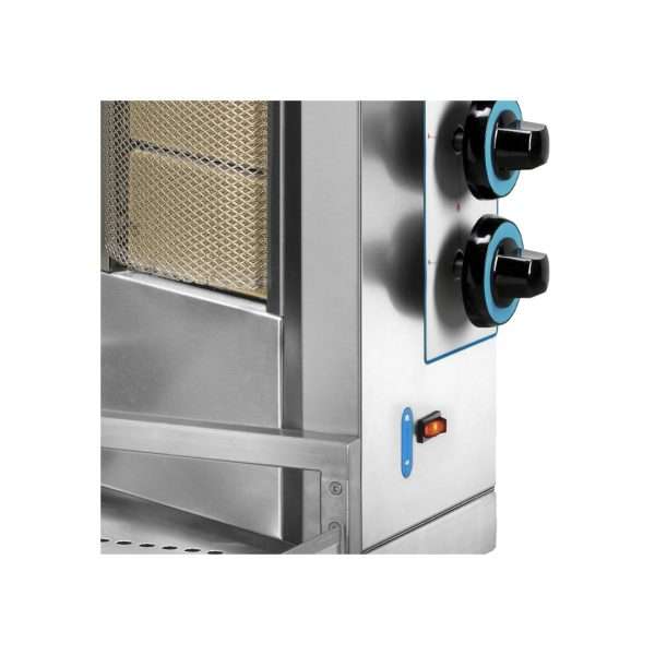 Los quemadores infrarrojos están dispuestos en doble columna para una cocción más uniforme y rápida, se pueden ajustar mediante selectores.