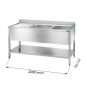Mesa abierta de acero inoxidable con 2 cajones horizontales sin estante con peto trasero L1200xP600xH850 mm – línea basic
