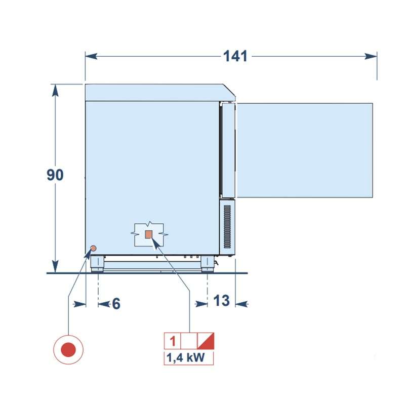 - La descongelación es manual temporizada (cubeta de recogida de agua de descongelación de tamaño GN 1/1 altura 40, incluida);