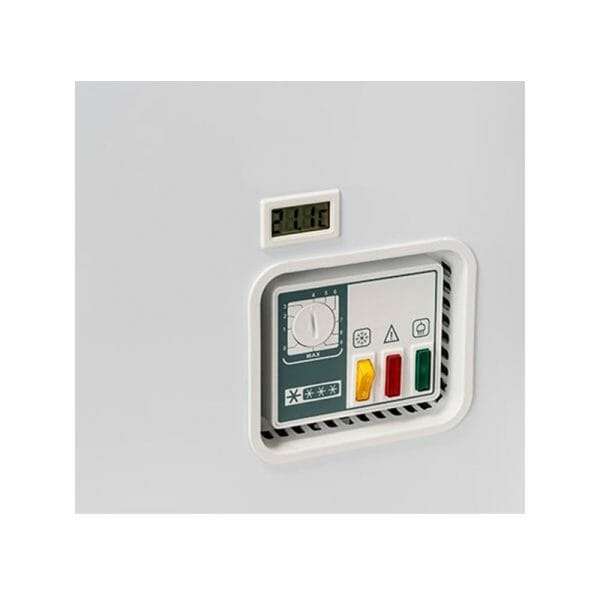 El frío se produce directamente dentro de la cámara haciendo que la refrigeración sea estática y el termostato es mecánico y hay un control de temperatura en la pantalla analógica.