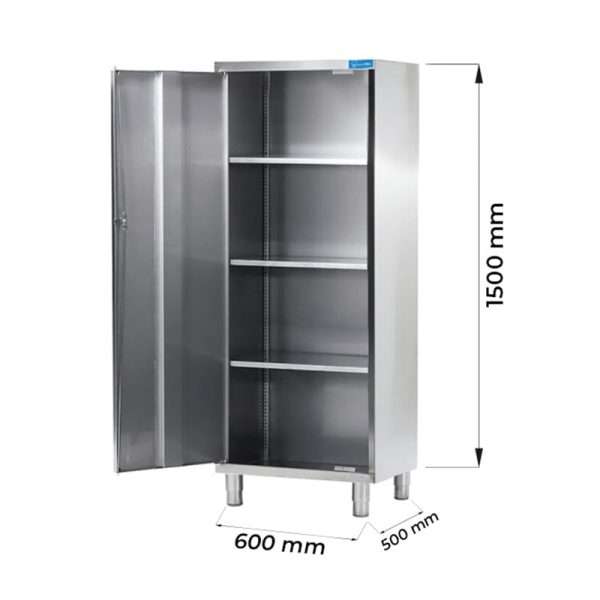 Armario de acero inoxidable con puerta batiente y 3 estantes – L600xP500xH1500 mm