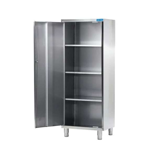 El armario con puerta batiente tiene una robusta estructura de acero inoxidable – AISI 430 con acabado Scotch Brite.