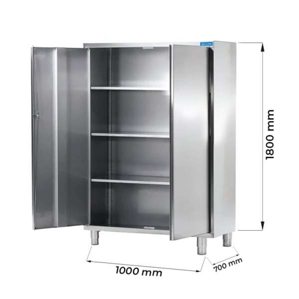 Armario de acero inoxidable con puertas batientes y 3 estantes – L1000xP700xH1800 mm