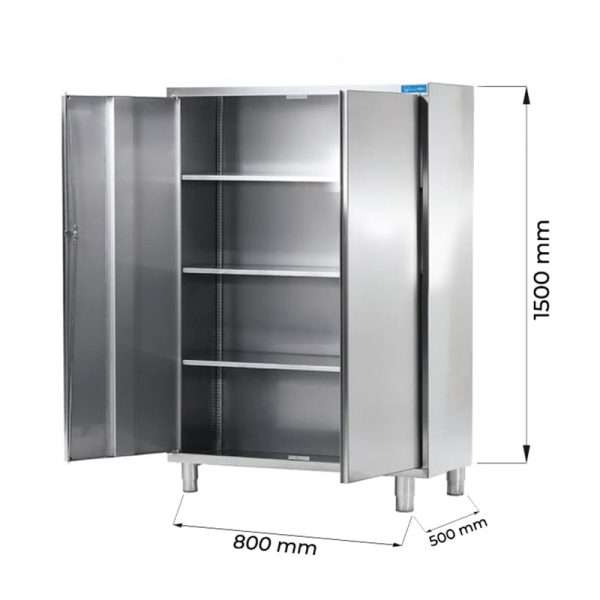 Armario de acero inoxidable con puertas batientes y 3 estantes – L800xP500xH1500 mm