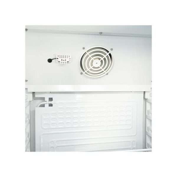 La refrigeración es estática y el frío es producido por un evaporador de placa colocado directamente dentro de la cámara, hay un ventilador interno que permite tener una temperatura uniforme dentro de la cámara.