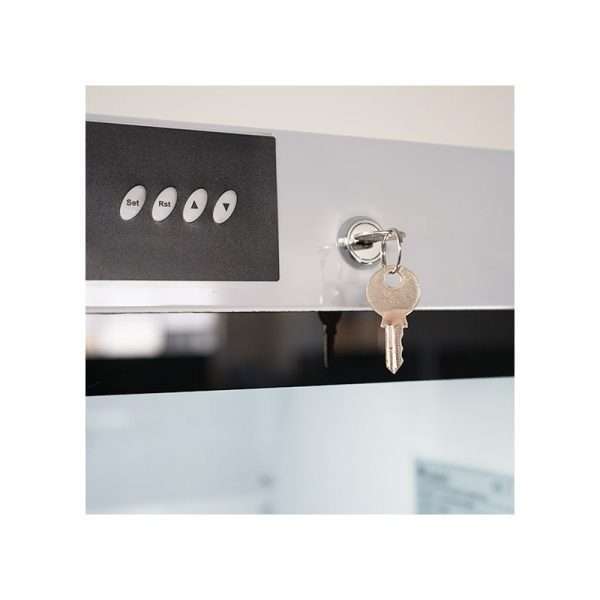 El rango de temperatura es de +2°C a +8°C y se puede ajustar a través del termostato digital insertado en el marco de la puerta.