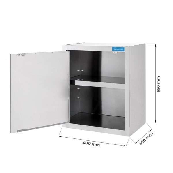Armarios de pared con puerta batiente en acero inox y 1 estante, L400xP400xH650 mm – linea premium