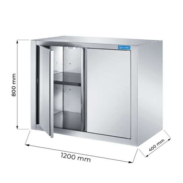 Armarios de pared con puertas batientes en acero inox y 1 estante, L1200xP400xH800 mm – linea premium