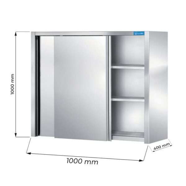 Armarios de pared con puertas correderas en acero inox con 2 estantes, L1000xP400xH1000 mm – linea premium