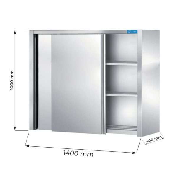 Armarios de pared con puertas correderas en acero inox con 2 estantes, L1400xP400xH1000 mm – linea premium
