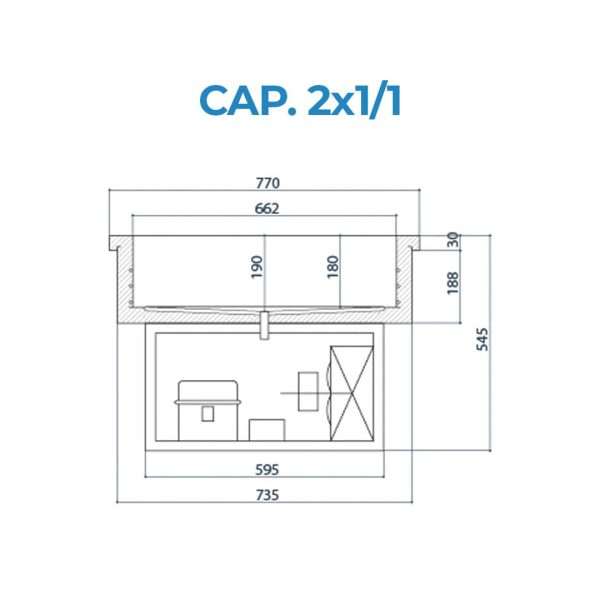 Bandeja refrigerada (temp. de +2°C a +8°C) empotrable para 2 recipientes GN 1/1 de refrigeración estática y grupo incorporado