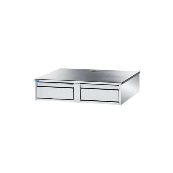 Base de la máquina café de acero inoxidable con tolva batiente de filtro y 2 cajones de servicio L1300xP680xH240 mm
