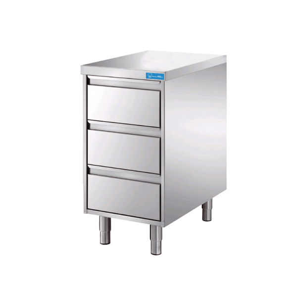 Cajonera de acero inoxidable con 3 cajones sin peto trasero – L500xP700xH850 mm