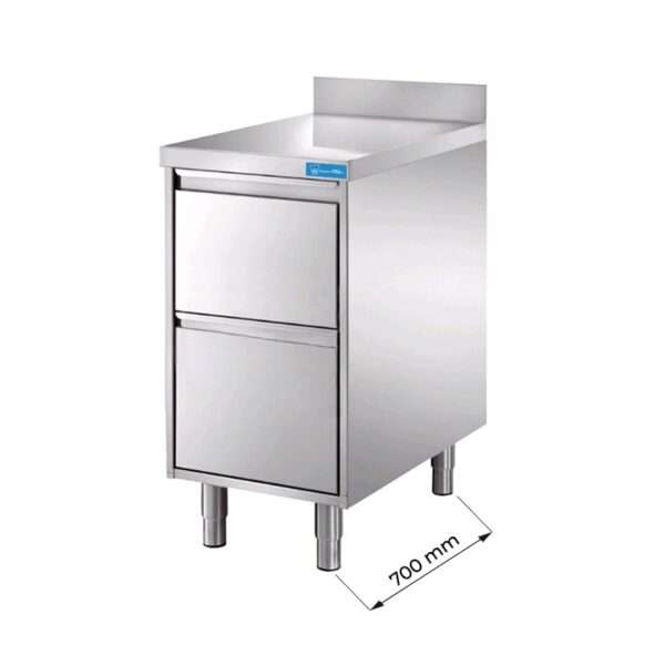 Cajonera en Acero Inox con n.2 cajones y con peto trasero