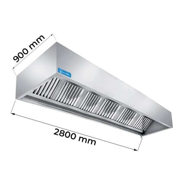 Campana serie cúbica instalación de pared con motor y regulador de velocidad – dim. L2800xP1400xH450 mm