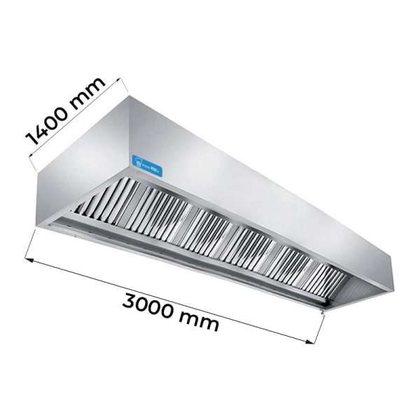Campana serie cúbica instalación de pared con motor y regulador de velocidad – dim. L3000xP1400xH450 mm