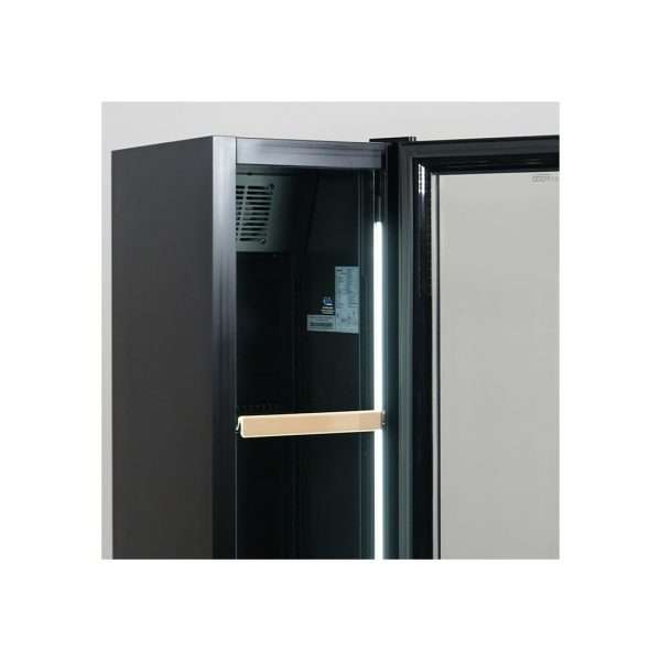 - Iluminación LED interior: dos tiras de LED verticales, para realzar la presentación de las botellas;
