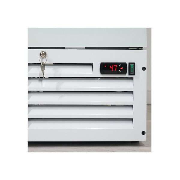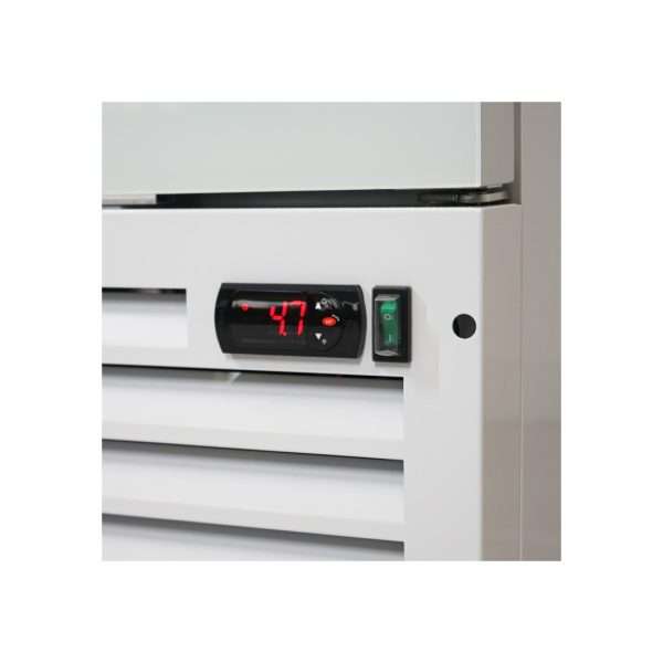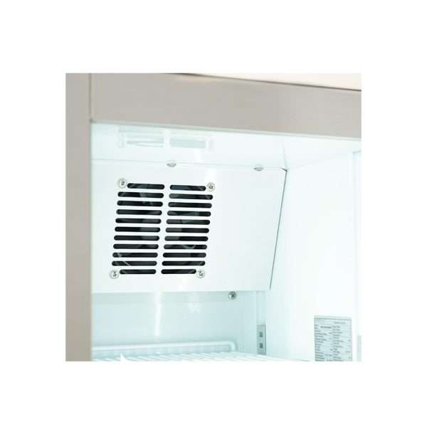 - Sistema de refrigeración estática con ventilador agitador: garantiza una distribución uniforme del frío en el interior del expositor;