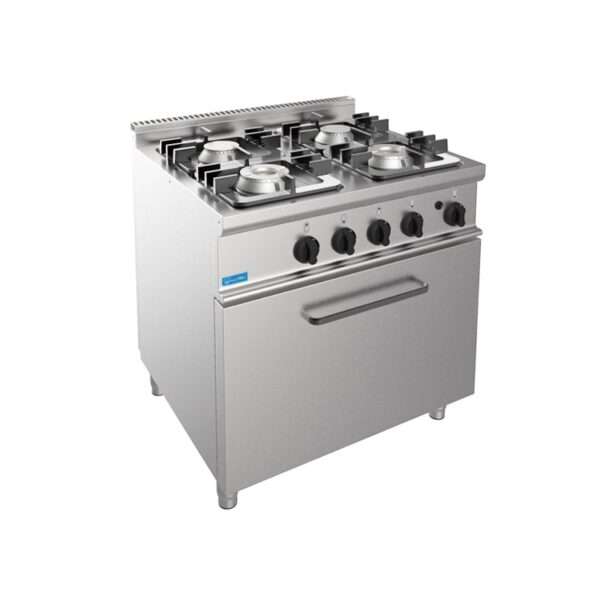 Cocina profesional de gas 4 fuegos sobre horno de gas estático GN 2/1 – Profundidad 700 mm