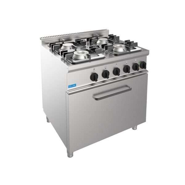 Cocina profesional a Gas 4 Fuegos sobre horno eléctrico estático GN 2/1 – Profundidad 700 mm