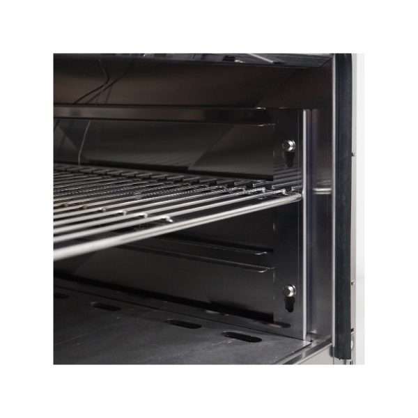 El modelo en cuestión está sobre un horno estático GN 2/1 eléctrico de 5,48 kW trifásico enteramente de acero inoxidable.