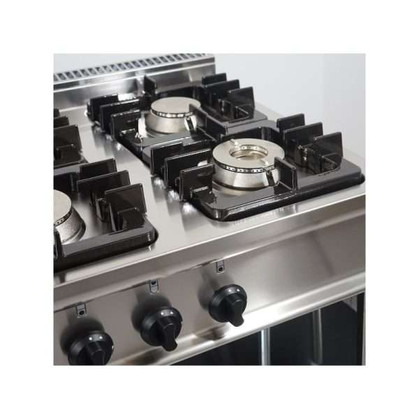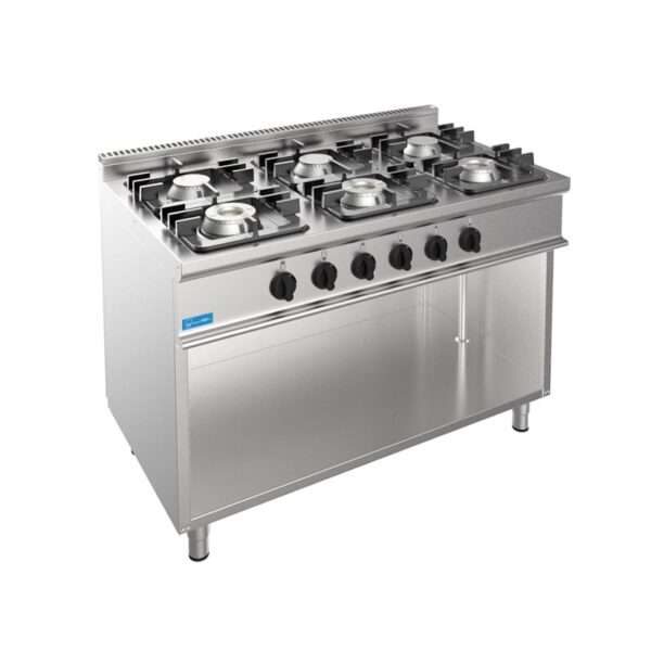 Cocina profesional de gas 6 fuegos en mueble sobre vano abierto – Profundidad 700 mm
