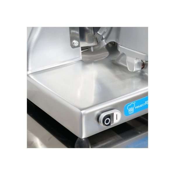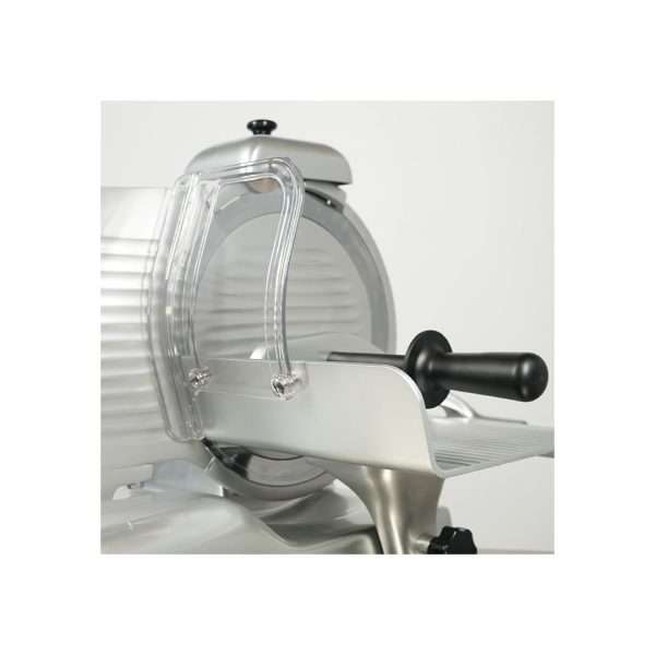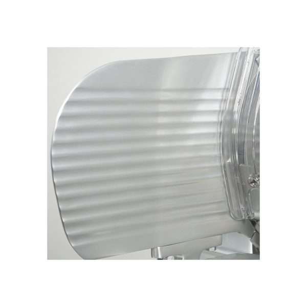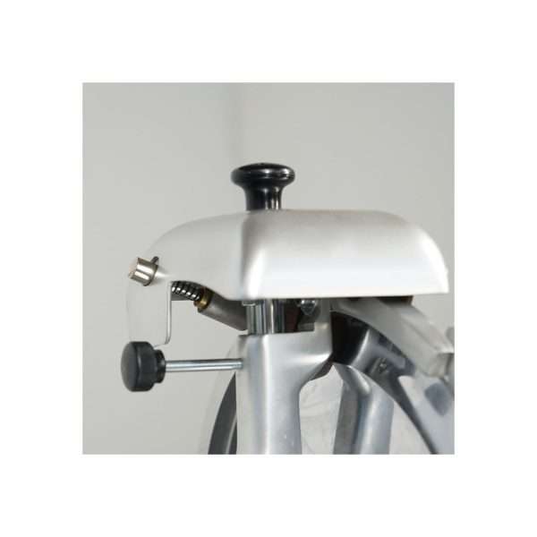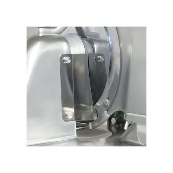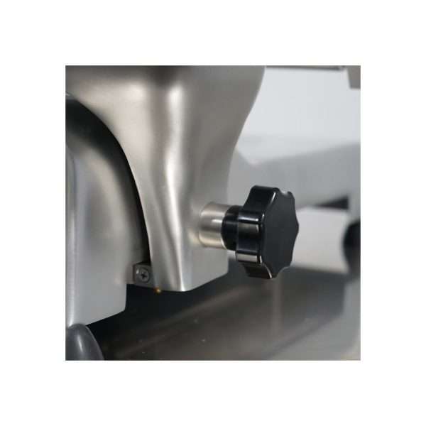 La cortadora vertical tiene una base, una cubierta de hoja, una placa y una vela de aluminio fundido a presión con oxidación anódica brillante. Su nuevo diseño incluye bordes redondeados para facilitar la limpieza rápida, garantizar una higiene impecable y ofrecer una resistencia a la corrosión considerable, asegurando una vida útil prolongada.