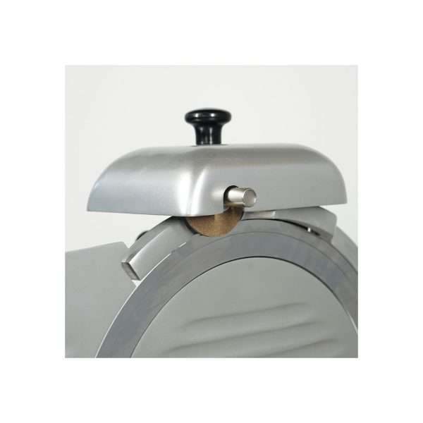 La perilla graduada ofrece la posibilidad de ajustar con precisión el espesor de corte, hasta 15 mm. Además, la cortadora está equipada con un afilador fijo.