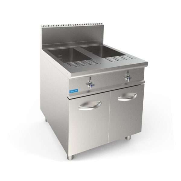 Cuecepasta eléctrico profesional sobre mueble con cuba doble de 40 lt + 40 lt