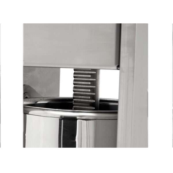 Tiene una estructura de acero inoxidable con cilindro y tornillería de acero inoxidable para garantizar la máxima higiene.
