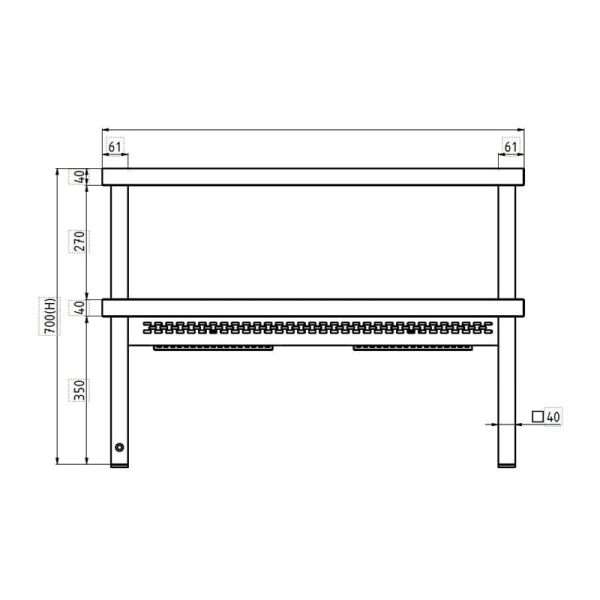 Estante de apoyo doble calefactado de acero inoxidable L1400xP350xH700 mm – línea basic