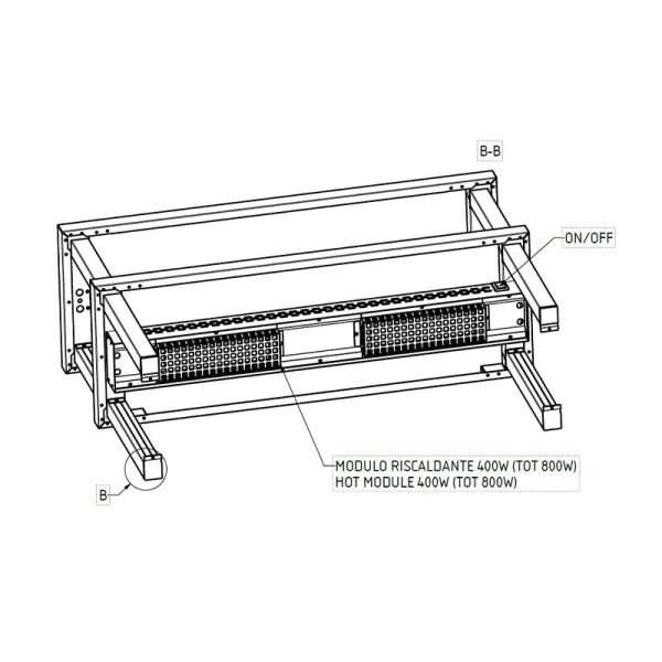 Estante de apoyo individual calefactado de acero inoxidable L1800xP350xH400 mm – línea basic