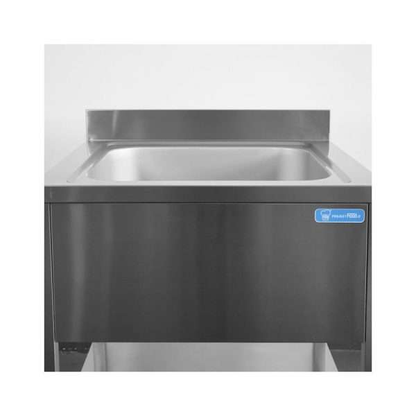 Fregadero abierto en acero inox sobre piernas con peto trasero L1000xP600xH850 mm – linea premium