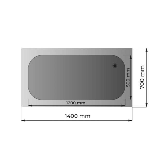 El seno es acero INOX 18/10 – AISI 304 impresas y soldadas. Dimensión seno L800xP400xH350 mm