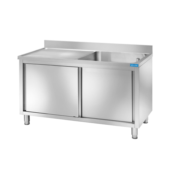 Fregadero con puertas de acero inoxidable con 1 cuba y escurridor a la izquierda – L1100xP700xH850 mm