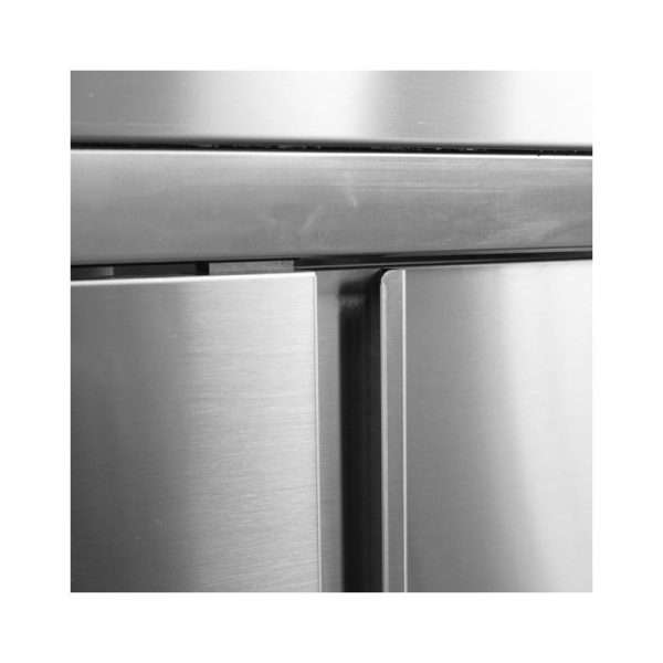 El peto trasero posterior de acero inoxidable de la mesa tiene una altura de 10 cm.
