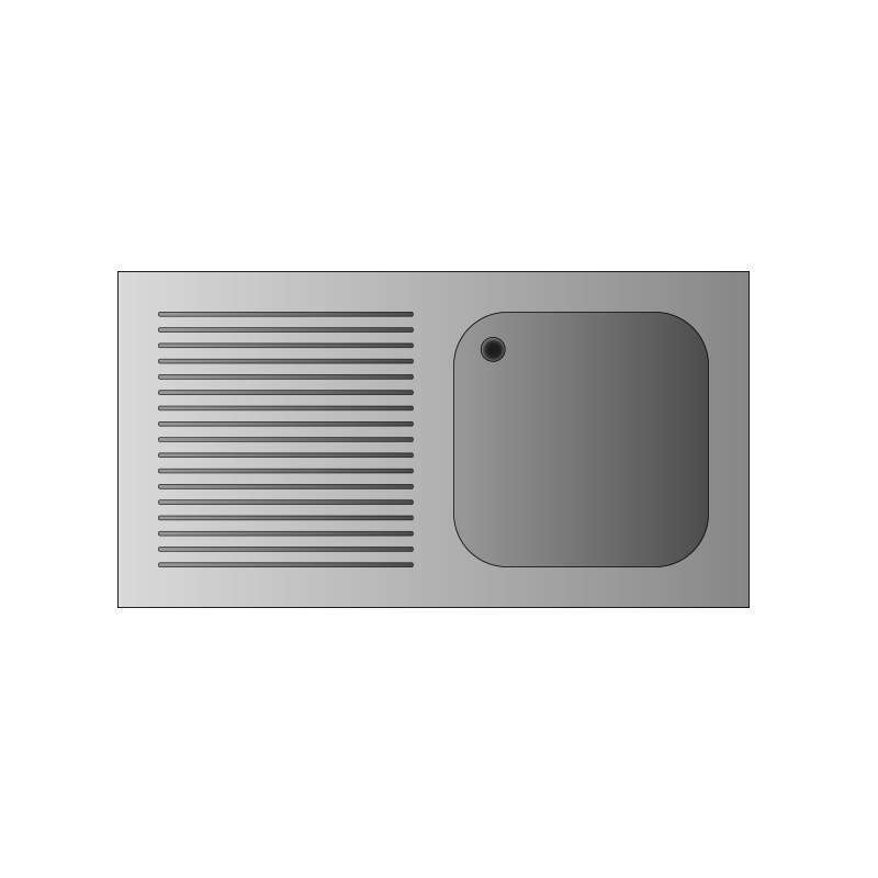 Fregadero abierto de acero inoxidable con 1 cuba y escurridor a la derecha L1000xP600xH850 mm – línea basic