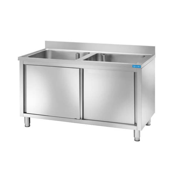 Fregadero con puertas de acero inoxidable con 2 cubas L1000xP600xH850 mm – línea basic