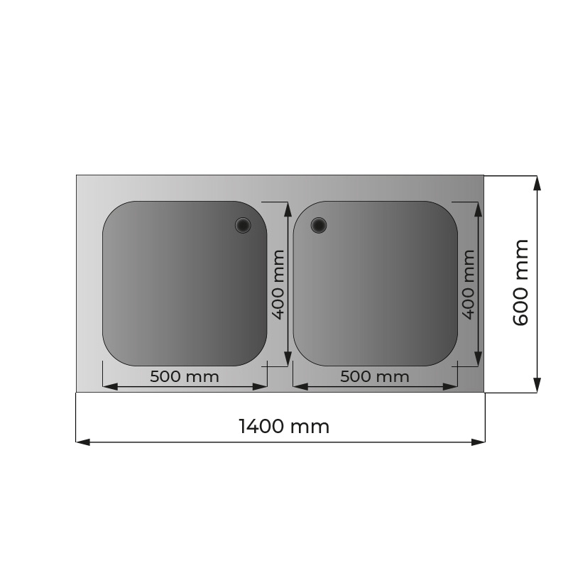 Fregadero mueble en acero inox con N.2 senos y peto trasero L1400xP600xH850 mm – linea premium
