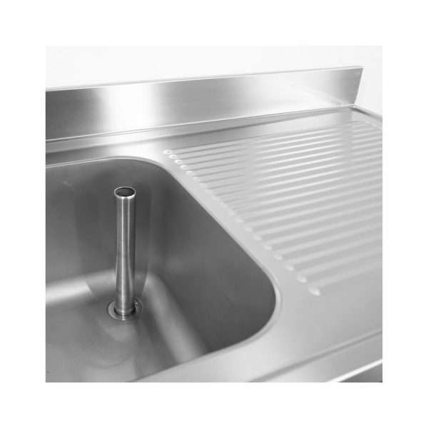 Fregadero mueble en acero inox con peto trasero y gotero a la izquierda L1500xP600xH850 mm – linea premium
