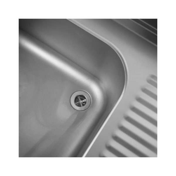 El fregadero tiene una robusta estructura en acero INOX 18/10 – AISI 304 con acabados en Scotch Brite.
