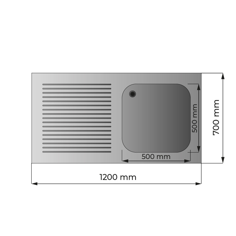 Fregadero mueble en acero inox con peto trasero y gotero a la izquierda L1200xP700xH850 mm – linea premium