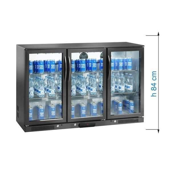 Frigorífico de sobremesa/de barra para bebidas negro con 3 puertas batientes – Altura 84 cm | Temperatura de +2°C a +8°C