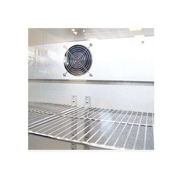 - Sistema de refrigeración ventilada: garantiza una distribución uniforme del frío, manteniendo la temperatura estable en toda la vitrina.