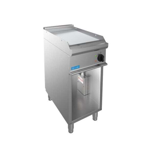 Fry-Top eléctrico profesional con plancha rayada individual sobre vano abierto
