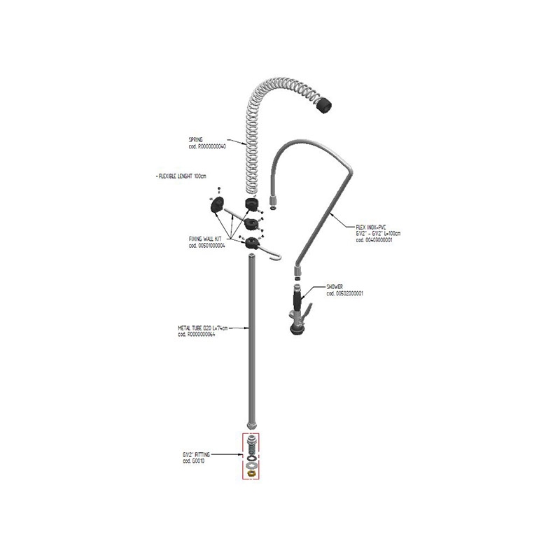 Grupo ducha de prelavado H 100 cm para combinar con mezclador de pedal