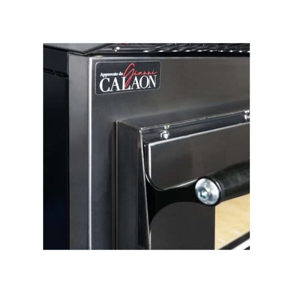 La cámara de cocción está construida con chapa aluminizada, mientras que la encimera está hecha de ladrillos refractarios con un espesor de 1,4 cm.