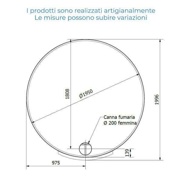 El horno está equipado con un tubo de salida de diámetro 200 mm.