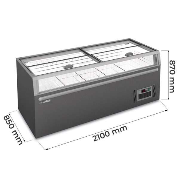 Isla supermercado panorámica estática con descongelación automática y temp. de +10°C a -22°C – capacidad 745 lt