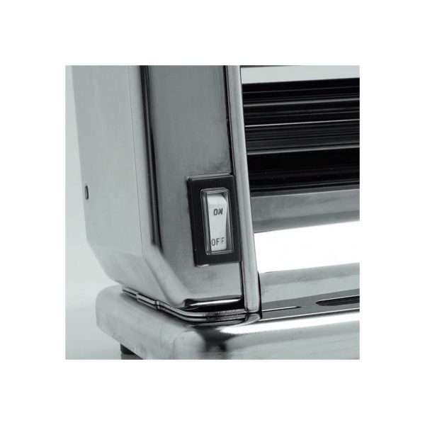 Equipada con una amplia rampa para extender cómodamente la pasta, esta máquina es ideal para obtener hojas de diferentes espesores.